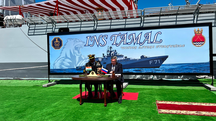 The commissioning ceremony took place on July 1, 2025 in Kaliningrad. The eighth Project 11356 frigate, built in Russia for the Indian Navy, was christened Tamal, which means "Sword" in Sanskrit.