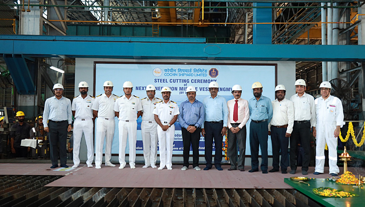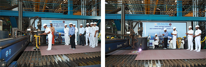 'Steel Cutting' ceremony of the first ship of Next Generation Missile Vessel (NGMV), was held at Cochin Shipyard Limited (CSL) on December 16, 2024, Kochi in the presence of Cmde S. Parthiban, Warship Production Superintendent, Kochi. Contract for construction of six NGMVs was concluded with CSL in March 2023 with induction of the ships in the Indian Navy planned from 2027 onwards.