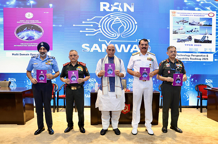 Defence Minister Rajnath Singh released the Joint Doctrine for 'Multi Domain Operations' (MDO) and the 'Technology Perspective & Capability Roadmap 2025' (TPCR) at Ran Samwad 2025. The MDO Doctrine charts the way forward for integrated & synergised employment of the Indian Armed Forces across land, sea, air, space, cyber & Cognitive domains - strengthening jointness & future readiness.