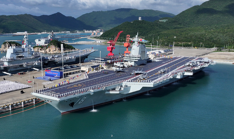 According to news reports of September 30, 2025, China's People's Liberation Army Navy's (PLAN) has officially commenced construction of the Type 004 nuclear-powered supercarrier at the Dalian Shipyard; displacing between 1,10,000 and 1,20,000 tonnes, making it potentially the largest in the world, surpassing the US Navy's Gerald R. Ford. Defence analysts note that the vessel's displacement would allow it to host not only a larger air wing but also expanded command-and-control facilities, enabling it to function as a floating joint operations hub for the PLAN. Also, the Type 004 will integrate a new generation of phased-array radars and shipborne air-defence systems, potentially comparable to or exceeding the capabilities of the US Navy's Aegis combat system.