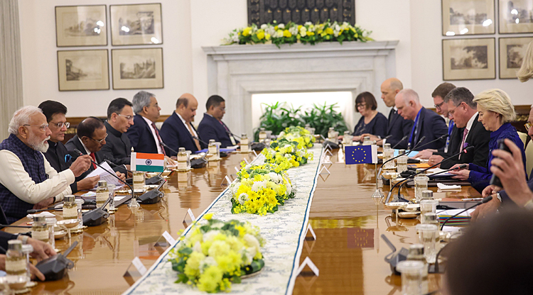 The India-EU Free Trade Agreement (FTA) had been in the works for the past decade and a half, but began gathering traction around 2023, when the US began to focus on developing an Indo-Pacific pivot. Relations gained considerable traction throughout 2025. A Leaders' Statement from the February visit by the College of Commissioners to India laid groundwork, agreeing to pursue a formal Security and Defence Partnership. Discussions involved the EU Commissioner for Defence and Space and India's Minister of State for Defence.