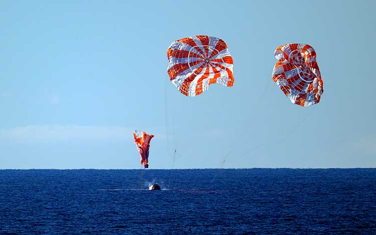 On April 10, Orion splashed down safely in the Pacific Ocean off the coast of San Diego, where NASA's recovery team, working alongside the Department of Defense and the USS John P. Murtha, moved swiftly to secure the capsule and recover the astronauts. As rehearsed, Navy divers approached Orion, opened the hatch, and assisted the crew onto the inflatable "front porch" before helicopter transfer to the recovery ship.