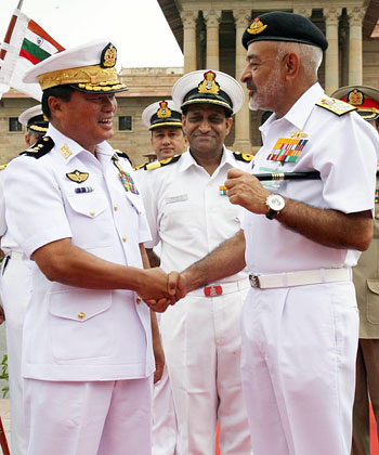 Vice Admiral Thura Thet Swe, Commander-in-Chief, Myanmar Navy, commenced a four-day visit to India by laying a wreath at the Amar Jawan Jyoti. The Admiral was received by Admiral D.K. Joshi, Chief of Naval Staff at the South Block lawns, where he inspected a Guard of Honour.