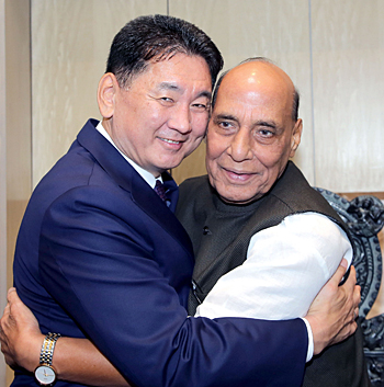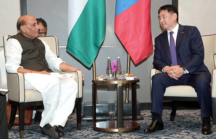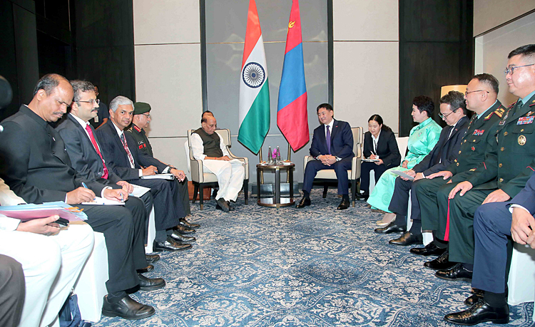 Defence Minister Rajnath Singh called on the President of Mongolia Ukhnaagiin Khurelsukh in New Delhi on October 14, 2025. The two leaders acknowledged that the two democracies have shared interest in peace and prosperity of the entire region and hoped that their meeting would further diversify the relationship into new areas of cooperation.