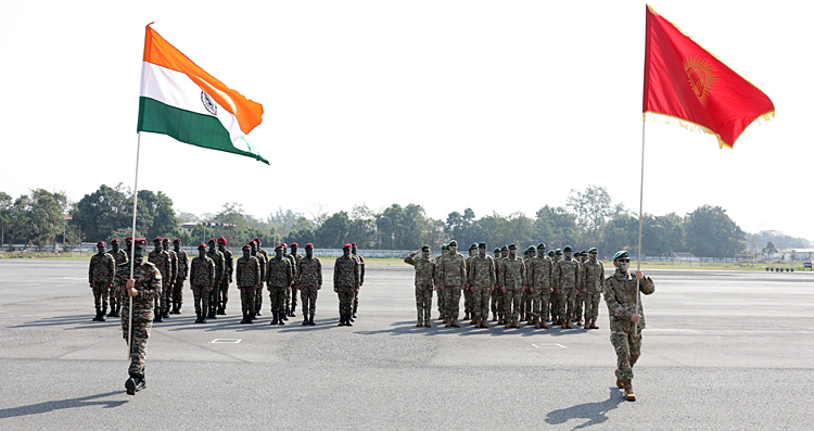 The Indian Army contingent comprising 20 personnel is represented by troops from the Parachute Regiment (Special Forces) and the Kyrgyzstan contingent also comprising equal strength is represented by ILBRIS Special Forces Brigade.